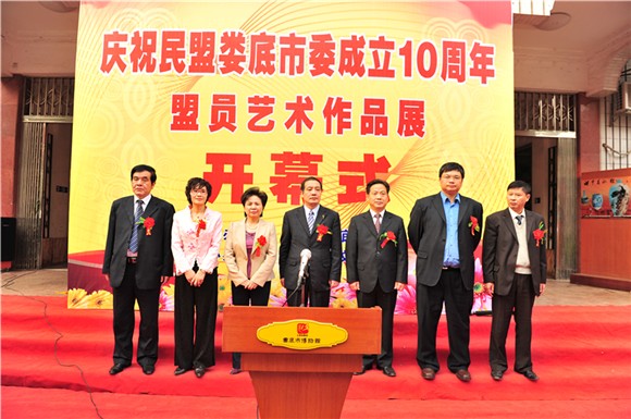民盟婁底市委自2000年5月成立已經(jīng)10年了。10年來,在民盟湖南省委和中共婁底市委的正確領(lǐng)導(dǎo)下,婁底民盟團結(jié)和帶領(lǐng)全市廣大盟員,緊扣婁底工作大局,積極參政議政、建言獻策,服務(wù)社會,做了大量卓有成效的工作,先后榮獲民盟中央頒發(fā)的 “全國基層組織建設(shè)先進單位”、“中國民主同盟盟務(wù)工作先進集體”、民盟省委頒發(fā)的“全省先進地方組織”等光榮稱號。為進一步激發(fā)廣大盟員對民盟的熱愛,傳承民盟優(yōu)良傳統(tǒng),更好地為婁底經(jīng)濟社會發(fā)展服務(wù),民盟婁底市委采取“三個一”慶祝婁底民盟成立十周年。即編輯一本畫冊、表彰一批先進、舉辦一次盟員藝術(shù)作品展。全國政協(xié)常委、民盟湖南省委主委楊維剛,婁底市政協(xié)主席楊云輝,中共婁底市委副書記田福德,中共婁底市委常委、統(tǒng)戰(zhàn)部部長肖新桃,婁底市政協(xié)副主席、民盟婁底市委主委邵瑛,市政協(xié)副主席、民盟婁底市委副主委肖揚等領(lǐng)導(dǎo)出席畫冊首發(fā)式和畫展開幕式,并為獲獎?wù)哳C獎。