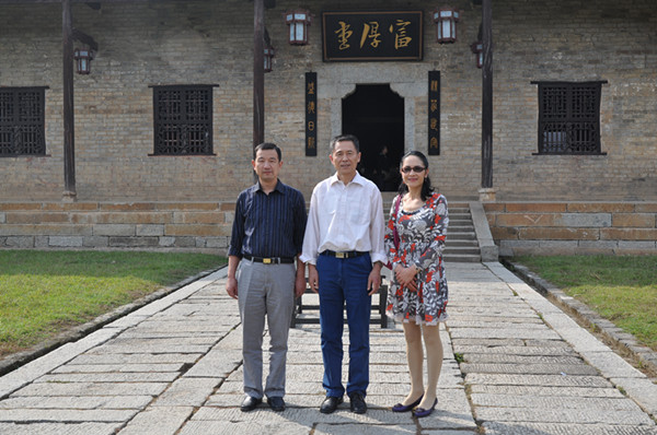 邵瑛(右)等陪周文順(中)參觀婁底雙峰曾國藩故居
