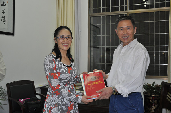 邵瑛還代表民盟婁底市委向周文順贈送了《婁底盟訊》及婁底籍知名書畫家的書畫作品。