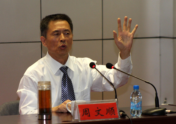 周文順用他睿智的思維、淵博的知識、深厚的學養、風趣的語言,融政治、經濟、文化、國防、軍事、外交和地理歷史百科知識為一體,為大家深入淺出地講述了中日兩國之間的結構性矛盾和沖突,給聽眾上了一堂極好的愛國主義教育課,教育和啟迪大家:在世界和平與發展大背景下,保家衛國重任在肩,民族復興匹夫有責,我們更應堅持和完善中國共產黨領導的多黨合作制度,凝聚各方力量,為中國的強大而努力奮斗!能容納400多人的報告廳座無虛席,他的精彩講授不斷被陣陣掌聲打斷。3個多小時的講課在掌聲和獻花中結束。報告會結束后,聽眾紛紛請周教授簽名并合影留念。