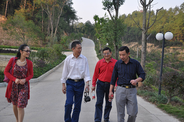 邵瑛(左一)等陪周文順(左二)參觀婁底經濟開發區中陽村