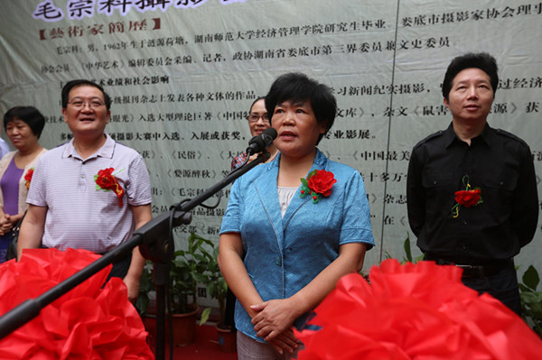 婁底市有關領導為毛宗科攝影藝術展覽剪彩。