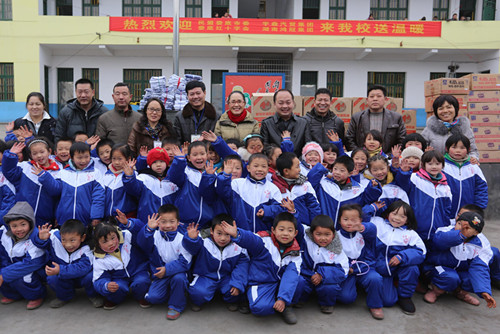 婁底宇森汽貿贈送160套新校服給惠民學校的學生喜慶新年。