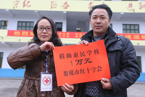 當天,婁底市紅十字會贈送1萬元現金,婁底宇森汽貿集團贈送160套新校服,湖南鴻冠集團贈送現金1萬元及價值5千元的餅干、食用油給惠民學校。
