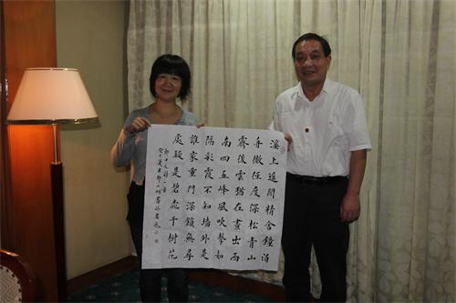 期間,婁底盟員畫家羅湘科、盟員書法家鄔小明分別向張主席敬獻了書畫作品。