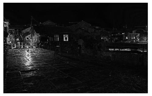 橋頭兩端的小街蜿蜒細長,臨街門鋪古老滄桑,似乎沒有盡頭深夜看