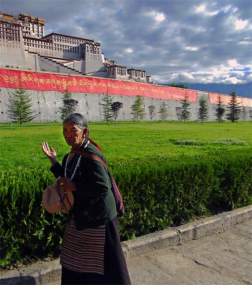 9月24日6:30從果卡林賓館出發(fā),途經(jīng)米拉山(海拔5013米),上午11:30到達拉薩市。準備第二天參觀布達拉宮。飯后在拉薩市區(qū)看看,大家興致勃勃。只我因有點高反,難受,提前坐人力三輪車回了住處。晚飯后去看布達拉宮夜景,猴哥勸我莫去,我執(zhí)意要去。好不容易來趟西藏,不看拉薩夜景不是白來了?晚上到了布達拉宮廣埸,精神狀況大為好轉(zhuǎn),并且拍片不停。謝總笑著說:你吃飯時還是個病樣子,一拍起片子就來精神了啊。這得感謝那兩粒高原寧和10多杯開水。晚上一直拍到10點多鐘才回飯店。