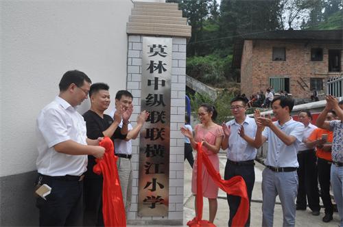邵瑛(右3)等為莫林中縱聯(lián)聯(lián)橫江小學(xué)揭牌.