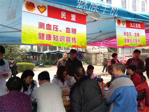 3月4日,春雨淅瀝,漣鋼體育館門前人來人往,熱鬧非凡。百多米長的雨棚下,擺上了各種攤位、服務(wù)臺。民盟漣鋼支部組織的“義診、健康咨詢”服務(wù)隊周圍,圍滿了前來看病、咨詢的居民群眾。支部委員曾金蘭、易俊、陳勇榮負責(zé)組織、后勤、發(fā)放資料;支部委員劉禮義醫(yī)師率領(lǐng)婁底市第一人民醫(yī)院盟員醫(yī)師及入盟積極分子,進行義診、測血壓、健康知識咨詢。大家忙得不亦樂乎。