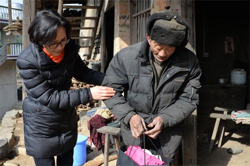 邵瑛一行給王本仲老人家,再次送上衣服和慰問金。王老一家目前生活依然困難。邵瑛翻翻他家薄薄的被子,摸摸漏風的窗戶,難過得掉眼淚。她和盟市委機關干部和扶貧隊工作人員商量,2018年重點幫扶王老家。