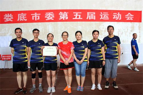 2018年 7月14日,民盟婁底市委第五屆運動會在湖南人文科技學院體育館圓滿落幕。婁底市政協副主席、民盟婁底市委主委邵瑛,湖南人文科技學院校長劉和云、黨委副書記劉鐵銘,中共婁底市委統戰部常務副部長王美成,盟市委副主委羊小慶、朱宏志,婁底市第一人民醫院黨委書記左建輝,婁底市第四中學校長李永福出席開幕式并參賽。盟市委副主委肖建泳主持開幕式和閉幕式。