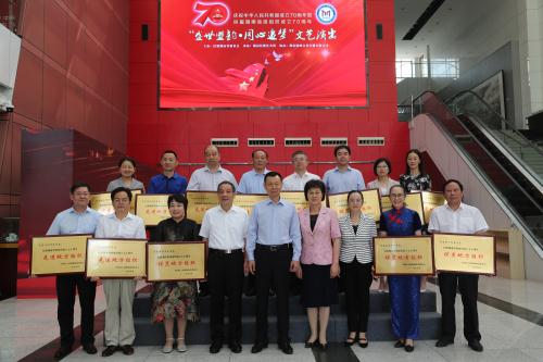 2019年9月17日下午,慶祝新中國成立70周年暨民盟湖南省級組織成立70周年大會和文藝演出在湖南省文化館一樓群星劇場舉行。婁底市政協副主席、民盟婁底市委主委邵瑛,民盟婁底市委專職副主委王紅貴參加會議。會上,全國政協副主席、民盟中央常務副主席陳曉光,中共湖南省委常委、統戰部長黃蘭香,湖南省人大常委會副主任、民盟湖南省委主委楊維剛等領導親切接見邵瑛等,并合影留念。會上宣讀了《民盟湖南省委關于表彰慶祝民盟湖南省級組織成立七十周年先進集體和先進個人的決定》。民盟婁底市委榮獲“模范地方組織”稱號;民盟漣源市委、婁底市中心醫院支部、民盟婁底市綜合一支部等3個基層組織榮獲“先進基層組織”稱號;劉敏等26名同志榮獲“優秀盟員”稱號;吳志奇等5名同志榮獲“優秀盟務工作者”稱號。婁底技師學院盟員鐘艷參加文藝匯演。