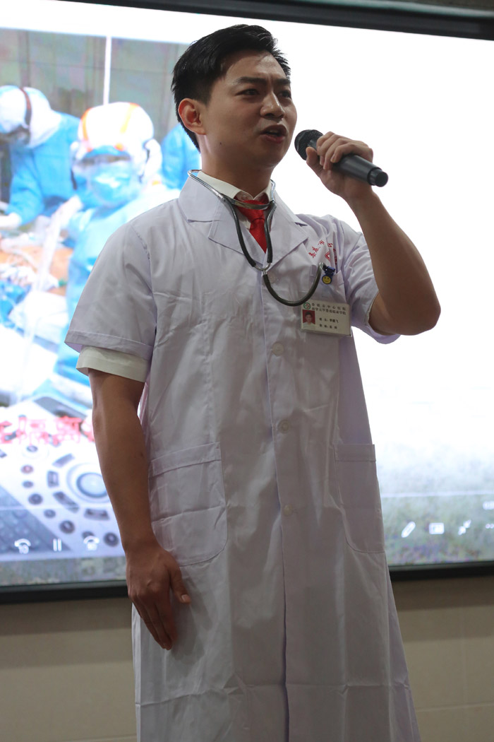 經過評委現場評分,婁底市中心醫院支部李騰飛宣講的《生命的守候》