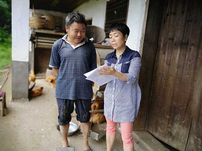 7月14日-15日,邵瑛一行再赴毛坪村,督查7月10日發現的問題是否整改到位。在村委會,邵瑛一行和村支兩委的同志一起查看資料;在老王家,王紅貴和老王媳婦一起整理衣服,要求她以后碗筷要及時清洗,衛生要每天打掃;在老陳家,邵瑛贊揚了老陳勤快肯干,整個廳屋收拾得干干凈凈,給人煥然一新的感覺,并要求他把雞圍在后山養,既便于收集雞糞,又確保屋前屋后衛生。