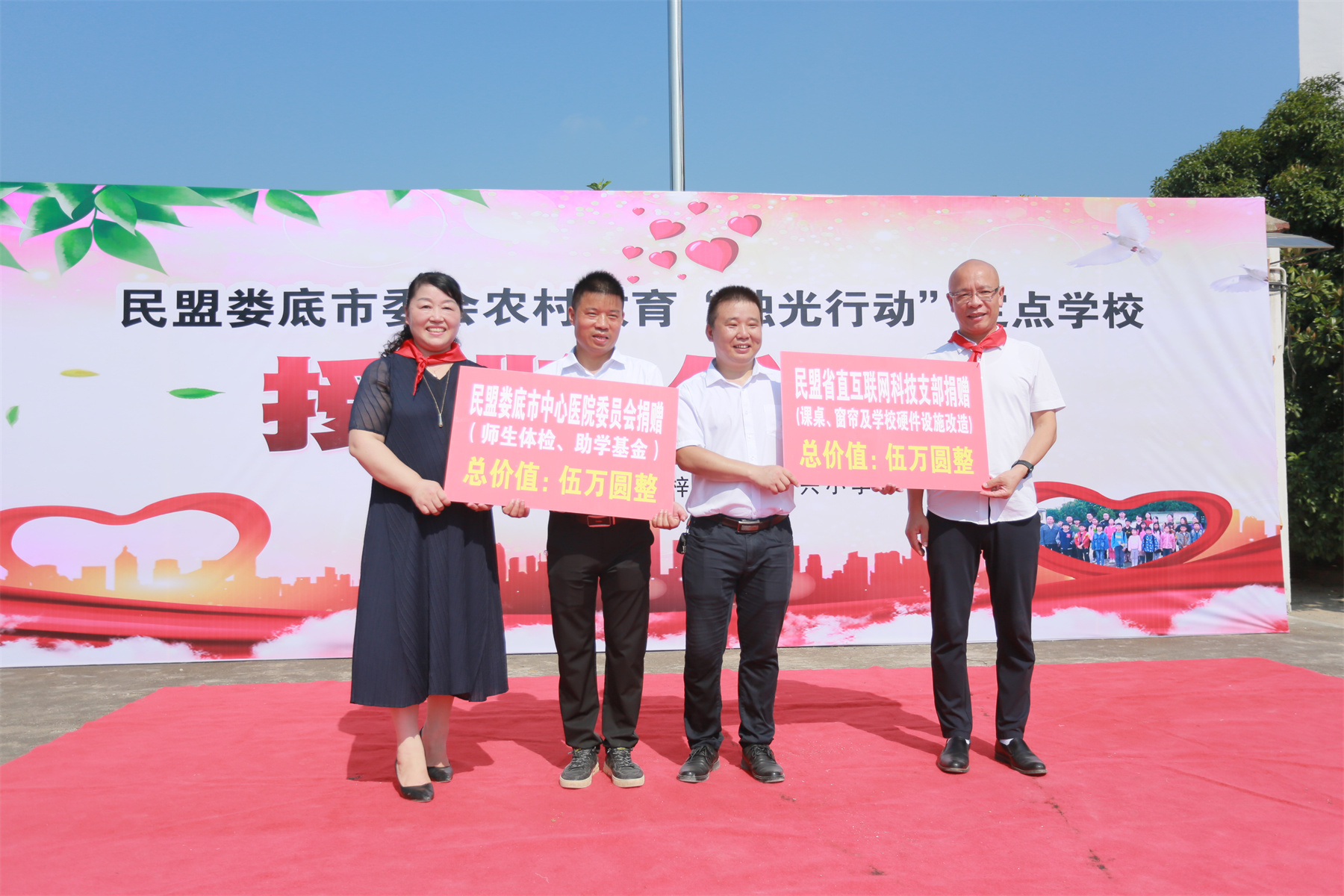 9月3日上午,民盟婁底市委會農(nóng)村教育“燭光行動”定點(diǎn)學(xué)校授牌儀式暨捐贈活動在雙峰縣梓門橋鎮(zhèn)大興小學(xué)隆重舉行。民盟湖南省委會社會服務(wù)處處長陳雅云,民盟婁底市委會副主委、婁底市中心醫(yī)院院長李紅輝,中共雙峰縣委常委、統(tǒng)戰(zhàn)部長劉燕,雙峰縣副縣長候選人李雄偉等出席活動。活動由民盟婁底市委會秘書長吳志奇主持。