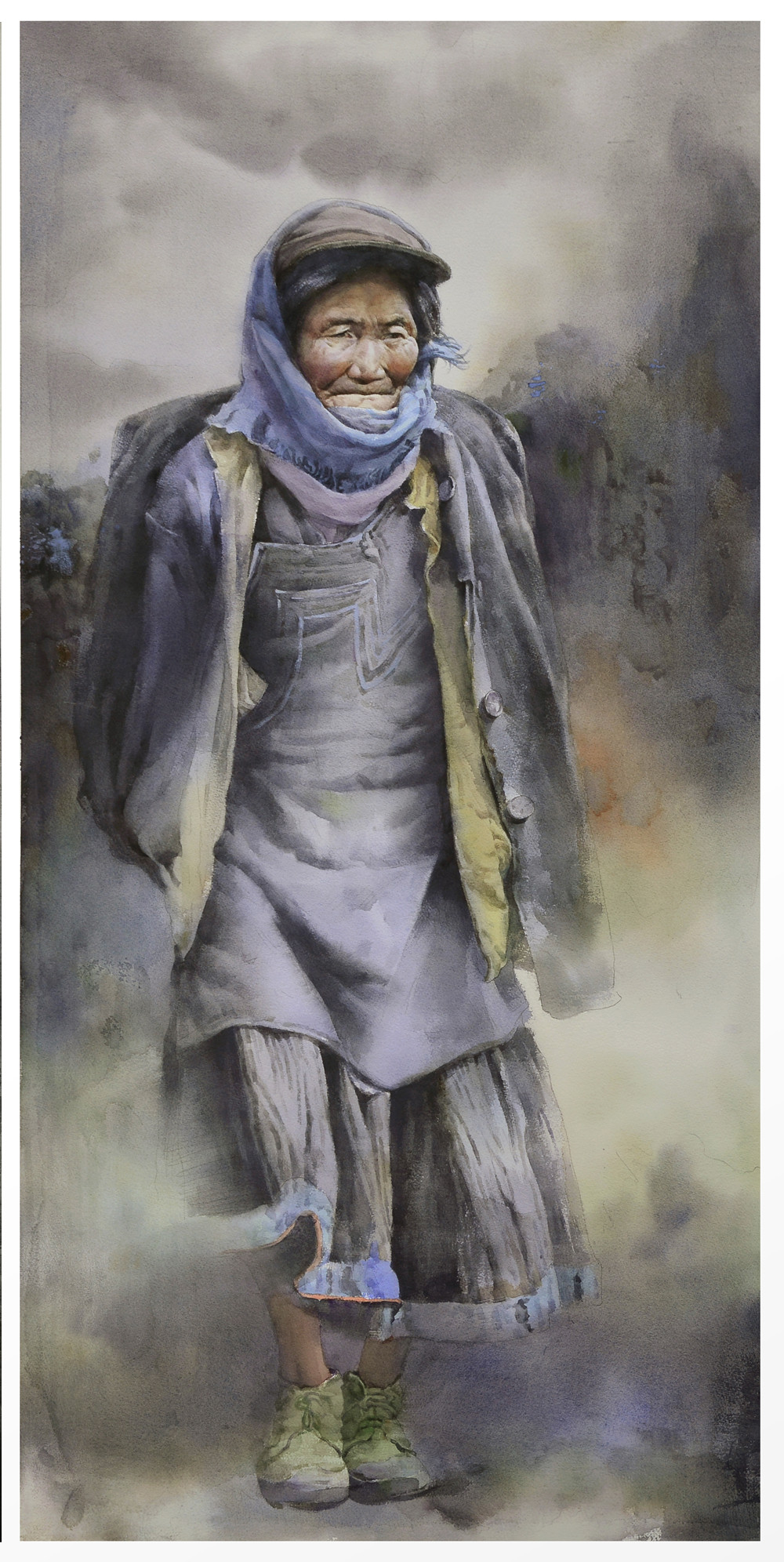 作品簡介:畫作以色達依山而建的密集紅色房子為背景,突出生活在這里的覺姆一家老中青三代,覺姆是這紅色當中的另一抹艷麗。盡管她們生活在貧瘠苦寒之地,但她們臉上洋溢的滿足與平和讓人羨慕。早上的朝陽如黨的關懷,溫暖著色達人們。