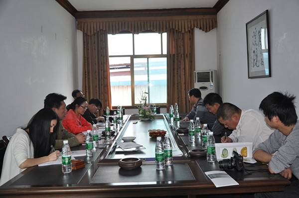 邵瑛一行與國藩溪硯工藝廠負(fù)責(zé)人及技術(shù)人員座談。
