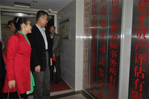 張冠生(左2)視察婁底盟員郭玉祥創(chuàng)辦的楚才事務(wù)所集團(tuán)