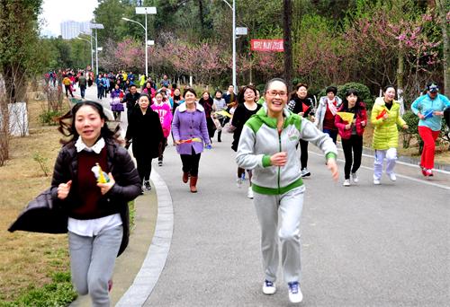 經過激烈而快樂的環園賽跑,民盟婁底市醫衛支部女盟員王利芝等獲得一等獎。