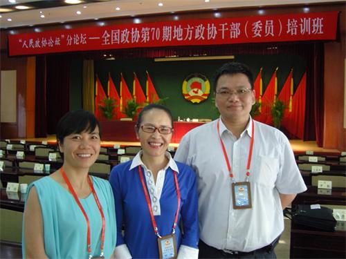 2015年7月1日-7月7日,“人民政協論壇” 分論壇—全國政協第70期地方政協干部(委員)培訓班在北戴河全國政協干部培訓中心舉行。婁底市政協副主席、民盟婁底市委主委邵瑛,婁底市政協副主席、民盟婁底市委副主委肖揚,民盟婁底市委秘書長兼辦公室主任王紅貴參加培訓。