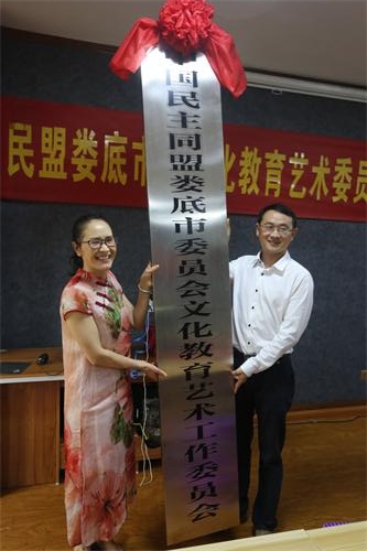邵瑛向民盟婁底市委文化教育藝術(shù)委員會(huì)授牌。民盟婁底市委委員、文