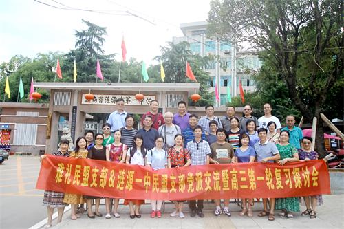 2018年7月15日,民盟長沙雅禮中學支部一行21人來到漣源市第一中學,與民盟漣源一中支部進行了盟務工作交流,并與漣源一中高三年級組就高三第一輪復習進行了研討。漣源市政協副主席、民盟漣源市委主委李海日,漣源一中校長吳夢周出席交流活動。