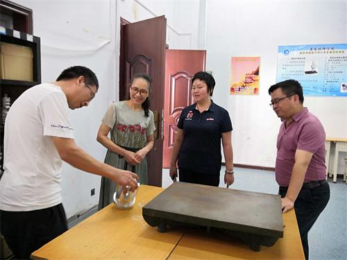 座談會后,周新輝陪同邵瑛一行考察了該院的技能培訓基地與實訓基地,實地感受學院辦學特色與模式,重點察看了以盟員謝學民老師名字命名的謝學民技能大師工作室。邵瑛對學院辦學模式給予高度評價,對謝學民老師為學校為民盟贏得榮譽表示祝賀,對放棄暑期休息,堅持在校集訓的學生給予了鼓勵。