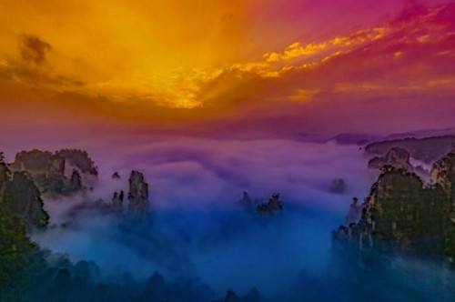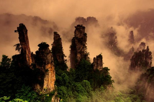 武陵源的風光是旖旎醉人的,是淋漓酣暢的,是光彩奪目的。醉人的景色讓你如癡如醉,酣暢的景色讓你浪漫舒懷,奪目的景色讓你流連忘返。金秋時節,萬山紅遍,野果飄香尤如一首首動人的詩篇,冬季里的峰海雪原,莽莽蒼蒼、氣象萬千,峰頂的勁松,昂首迎雪尤如一幅幅美麗的圖畫。武陵源是峰的世界,峰的海洋,水的源頭,云的故鄉。徜徉其間,心曠神怡,留連忘返。