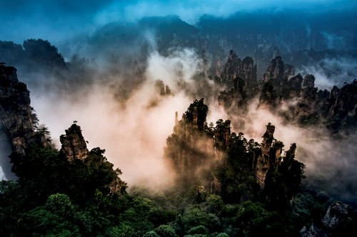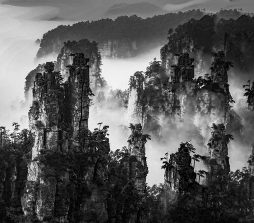 武陵源自然山水的拍攝創作春夏秋冬皆宜,天氣的變化,季節的交替,會給你創造無數的創作機會。春秋季節里,雨后初晴,這里是峰的森林、峰的海洋,遍野青翠映目,碧色連天,山翠如玉,晨霧飄渺,行云流水,瀟灑柔暢;磅礴壯觀,氣勢恢宏,似碧濤滾滾。青山翠圍中,山高路險,云霧深處,白云仙飄,峰巒疊嶂。一幅幅絕美的山水畫不斷地映入你的眼瞼,目不暇接。