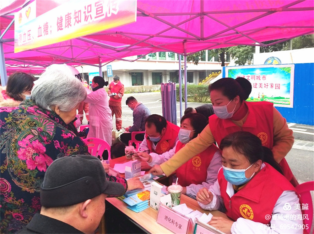 活動(dòng)現(xiàn)場,鋼城區(qū)域的盟員們發(fā)揮自己的優(yōu)勢,組織了一支“義診、健康咨詢”隊(duì),三個(gè)支部主委易俊、劉禮義、周騫負(fù)責(zé)組織、發(fā)放資料,盟員吳健、胡文才用航拍記錄整個(gè)活動(dòng)現(xiàn)場,盟員醫(yī)師李泓俊、何志剛、彭培艷、毛志群、肖和、扶明華及部分入盟積極分子進(jìn)行測血壓、血糖及健康知識(shí)咨詢等工作。一上午的功夫,有近600人接受了志愿服務(wù),市民對活動(dòng)紛紛點(diǎn)贊。