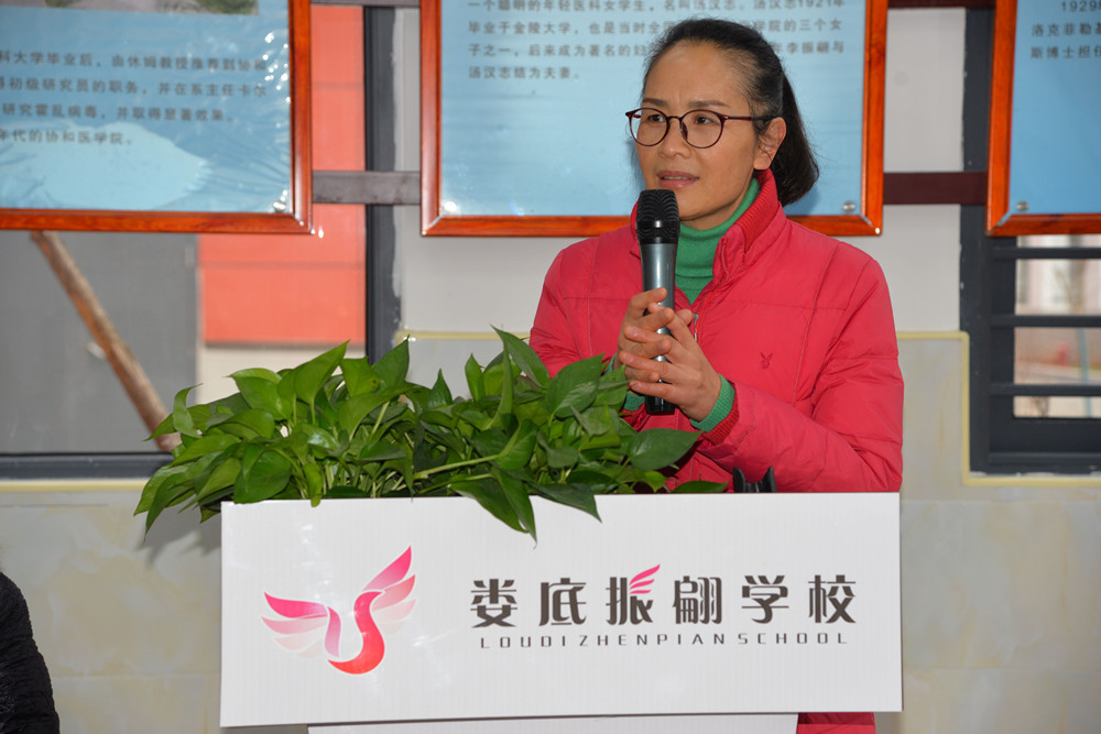 捐贈儀式上,民盟盟員、婁底振翩學(xué)校校長周霜代表學(xué)校致歡迎辭。
